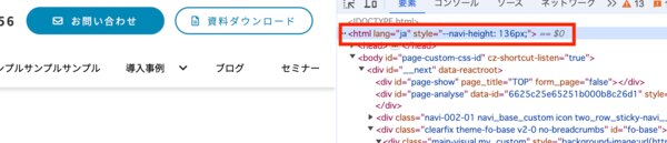 改修後はhtmlにヘッダーの高さを取得して「--navi-height: ヘッダーの高さ」が付与されるようになりました。
