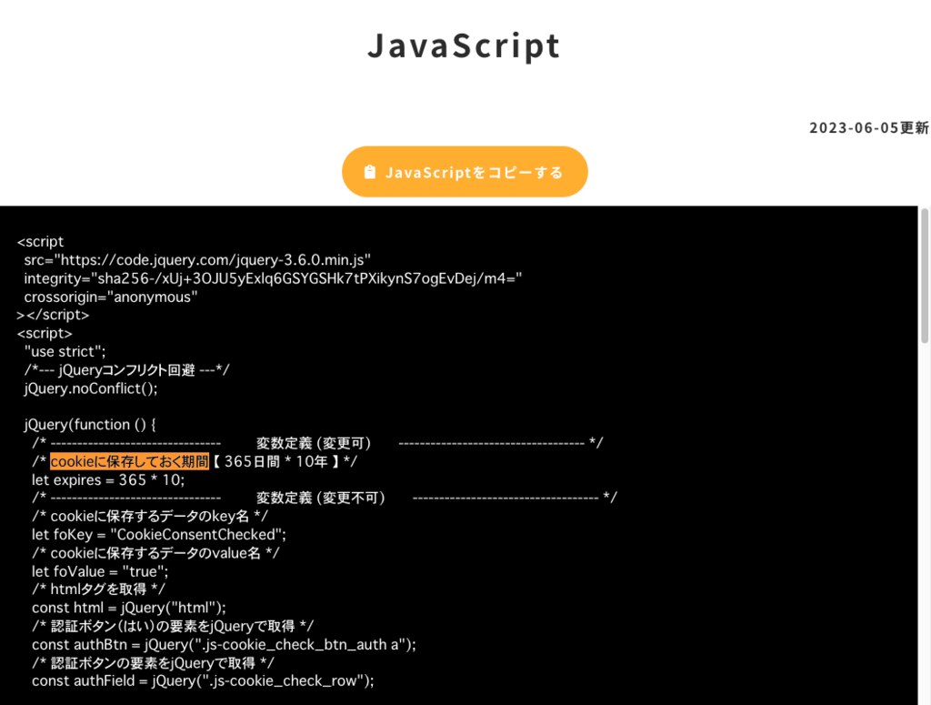 ※1:一度バナーを閉じた場合、他ページでcookieのJSとバナーを入れていたとしても、【cookieに保存しておく期間】中は 【JS】 |